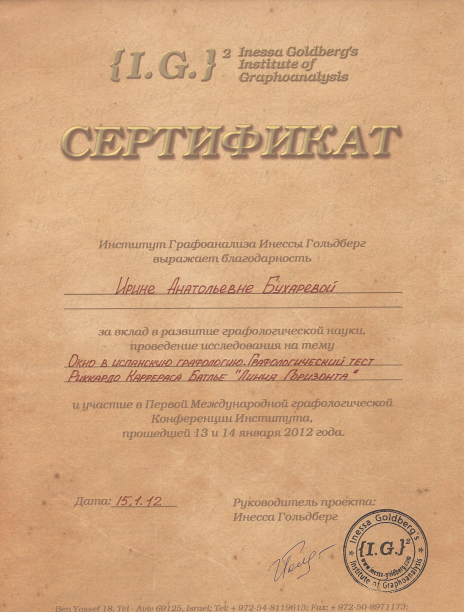 Еще раз благодарю Ирину за качественное обучение, за подарки, за откровенность и постоянное стремление к развитию, чтобы суметь больше дать людям достоверных знаний по графологии! Многие, даже недавно изданные и переизданные на русском языке книги содержат устаревшие на десятки лет знания. А Ирина четко следит за последними мировыми тенденциями научного мира в области графологии, выступает на международных конференциях, читает в оригинале зарубежные фолианты и рассказывает все самое актуальное и важно только своим студентам.