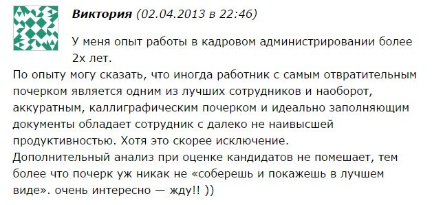 Послушав вас, я изменила свое мнение и интерес к графологии возродился.